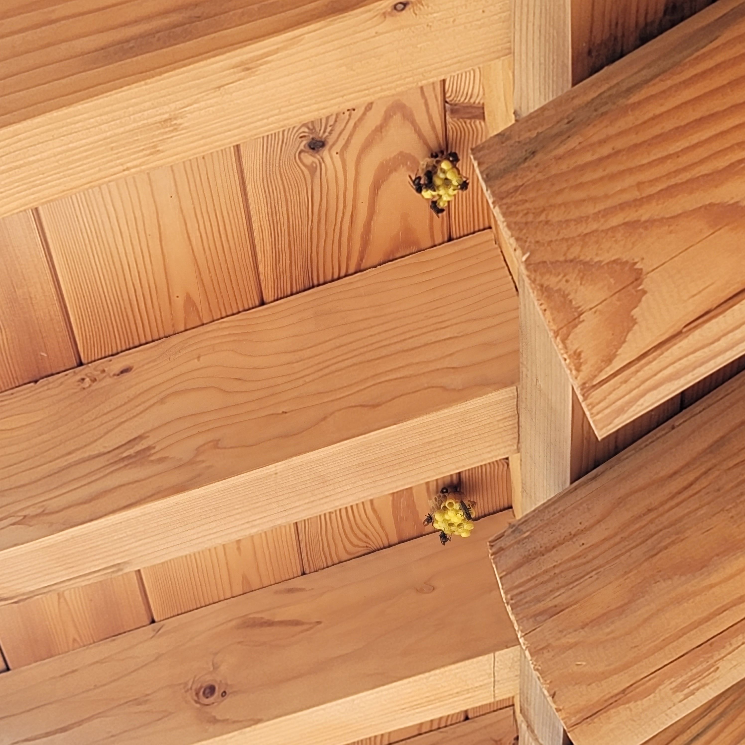 말벌들이 집을 짓고 있다. 한옥의 특성상 대부분이 목재로 되어 있다. 잘 말린 목재로 대들보부터 추녀까지 모든 것이 나무다. 말벌들도 나무가 좋은지 자주 찾아와서 며칠 새 집을 짓는다. 발견하는 데로 떼냈었는데 이번에는 두고 보기로 했다. 점점 말벌 개체수가 많아지면서 주위로 세력 확장을 하고 있다.