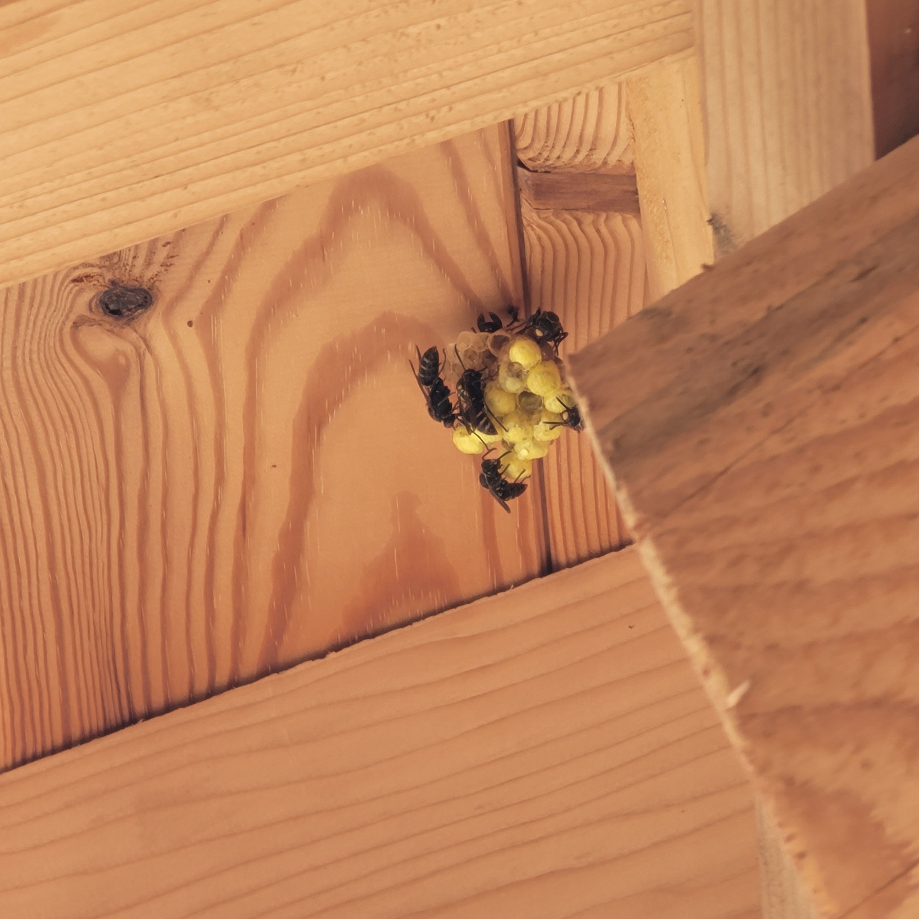 얼마 전 작은 말벌에 쏘였더니 쏘인 자리가 3일 정도 아픈 것을 경험했었다. 같이 공존하면 좋겠는데, 바로 창문 밖 처마에 집을 짓고 있어서 더 놔두면 서로 안 좋을 듯하다.