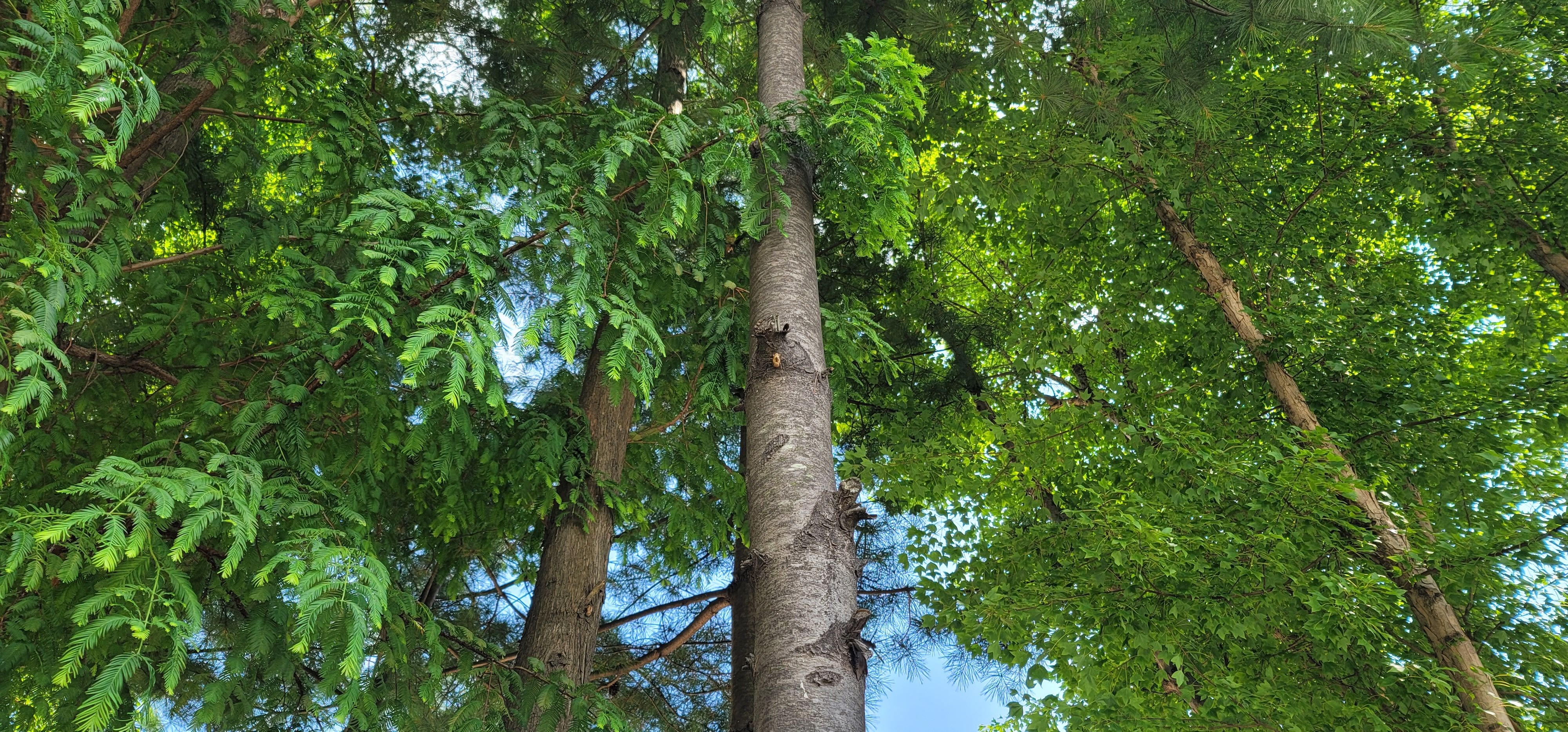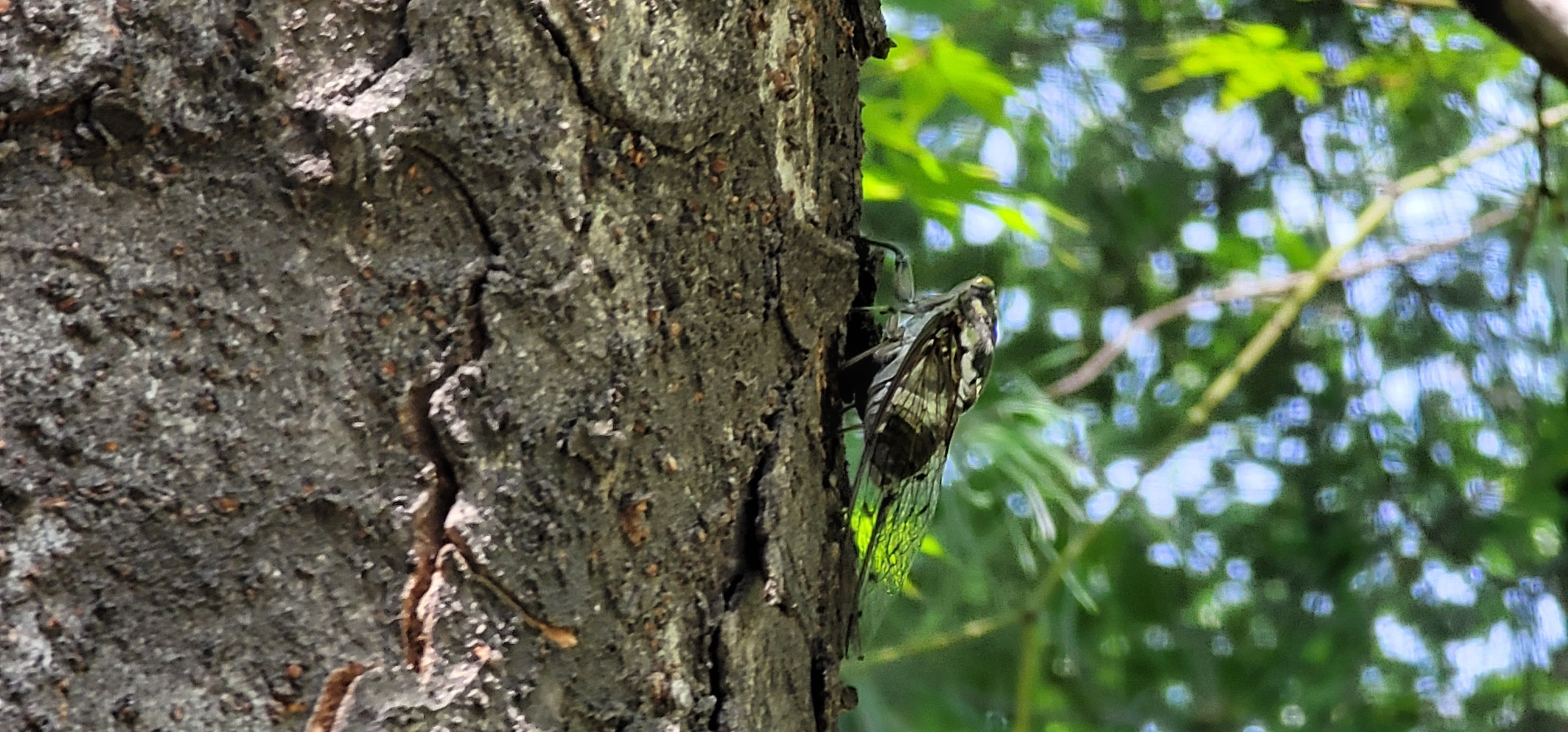 매미 껍질이 붙은 나무에서는 매미 울음소리를 들을 수 있다. 다양한 매미 울음소리가 들려온다.