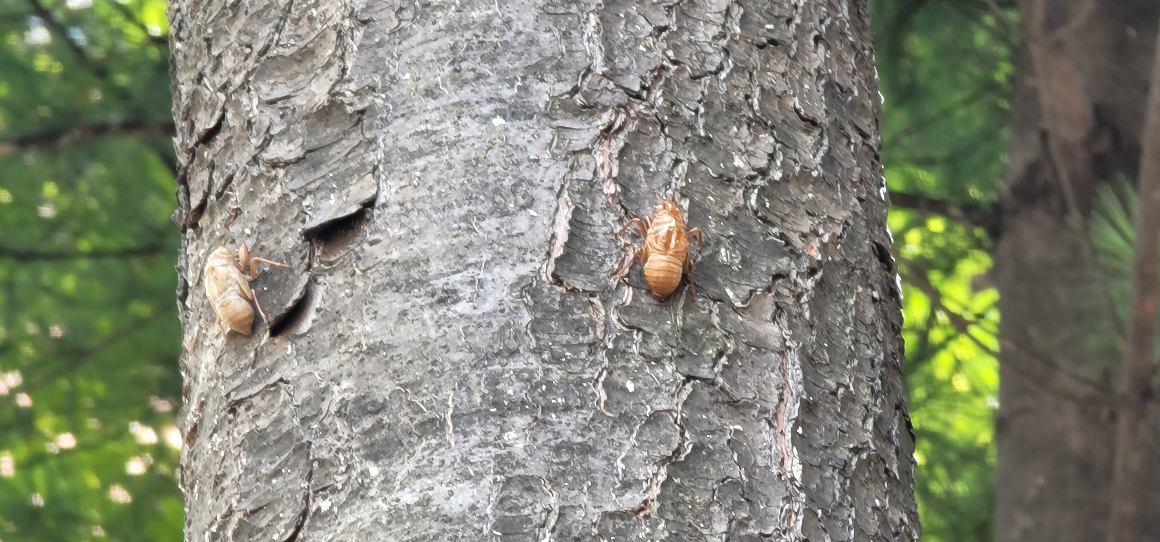 다양한 나무에 붙어서 탈피를 한 모양이다. 아주 작은 가지에도 붙어 있다.